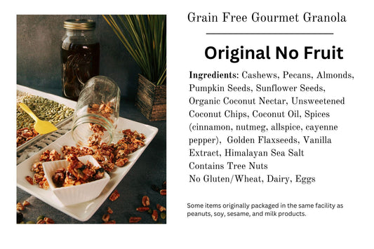 Our gourmet granola is a healthy and delicious snack crafted to satisfy your taste buds and nourish your body. This granola features the rich, caramel-like sweetness of coconut nectar, a low-glycemic sweetener that's perfect for those seeking a wholesome alternative to traditional sugars.